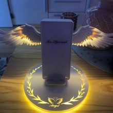 The wireless charger has a special, “extra” design. When you put the phone on, the angel’s wings will unfold, and the base will have an angel’s aura. The glossy and sleek surface looks very novel and elegant.