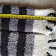 Socks are cool. The product is happy, although it seems that one is slightly longer than the other. I bought to walk in the winter around the house and lie in bed. Socks externally and to the touch are pleasant. Fluffy and dense, cheerful and warm. At my 37 size-at the time. The elastic leg does not bend. Socks with heel and I do not understand why do not give a choice of size or not specified in the description. Length about 33 cm and normally stretch. Washed them in a washing machine, remained the same fluffy. Sent out in a day. Came without a tag/label, in a pouchy package-envelope (in the last photo-pulled the socks from the envelope and immediately photographed). Finished in 35 days. The parcel was only tracked to the recipient country. The letter is not customized, can put in the mailbox without warning. Very good.