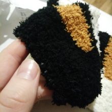 There were some gray threads on the beige part, but they just stuck and easily cleaned. They are so soft