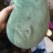 Incredibly soft fabric and somewhat loose stuffing means it's extremely huggable. Had a little difficulty staying sitting upright due to the large avocado butt. Too soft and cuddly for me to care. 5/5