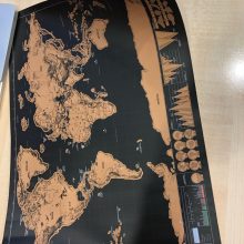 Covered with premium gold foil which lays above a beautiful colorful world on a high-end matte black sheet. We use some of the finest materials to create the most stunning maps.