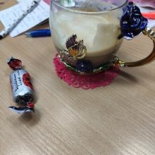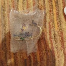 The girl of 20 years was delighted with the mug. I, a person of 40 years, treated calmly)) Gypsy gilding. But made relatively high quality. Everything is glued and painted. Even a butterfly from the inside. On the cup holder you can see traces of the molding (?). Spoon flat. Metal, but light. A small turquoise napkin is silicone. Very, very long shipping. Despite being paid. The store on the contact goes)) good, and he also suggested that local delivery slows down.