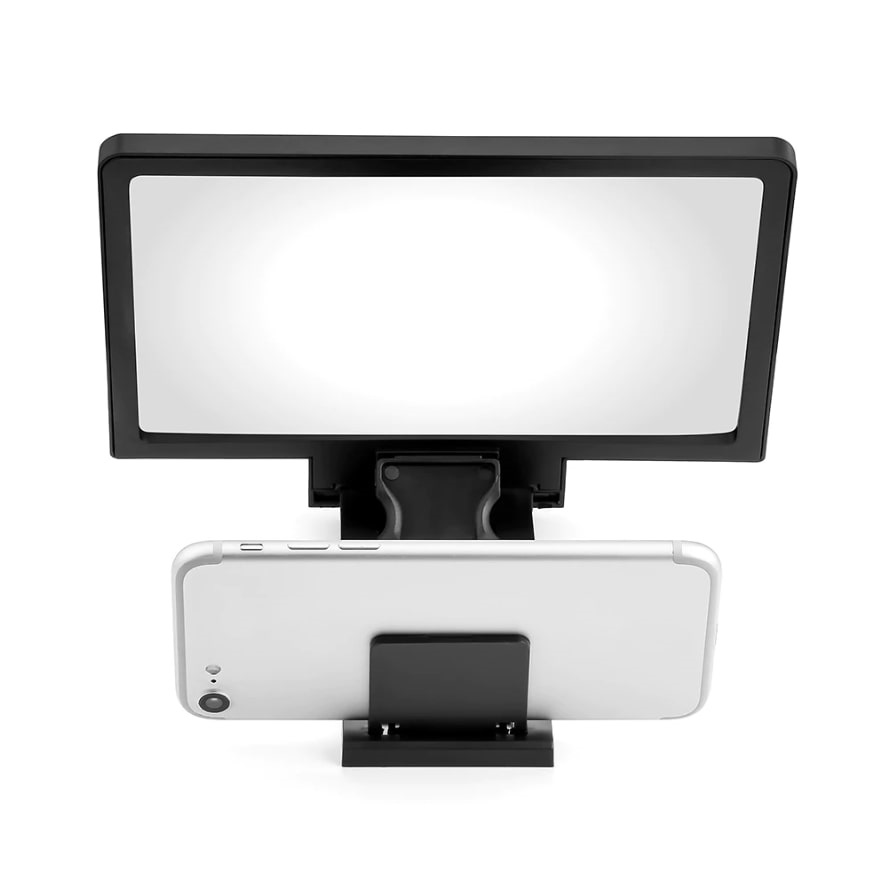 I like watching shows on my phone, especially when I'm at work. This screen magnifier makes the image in my phone screen bigger. It's easy to set up and put away. It's lighter than carrying my table. The screen is bigger than my tablet screen.